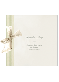 Nuestros libros de firmas tienen unas medidas de 22,5 x 22,5 cm y están compuestos por un mínimo de 18 páginas de 300 gramos hendidas, perforadas y encuadernadas con un lazo.