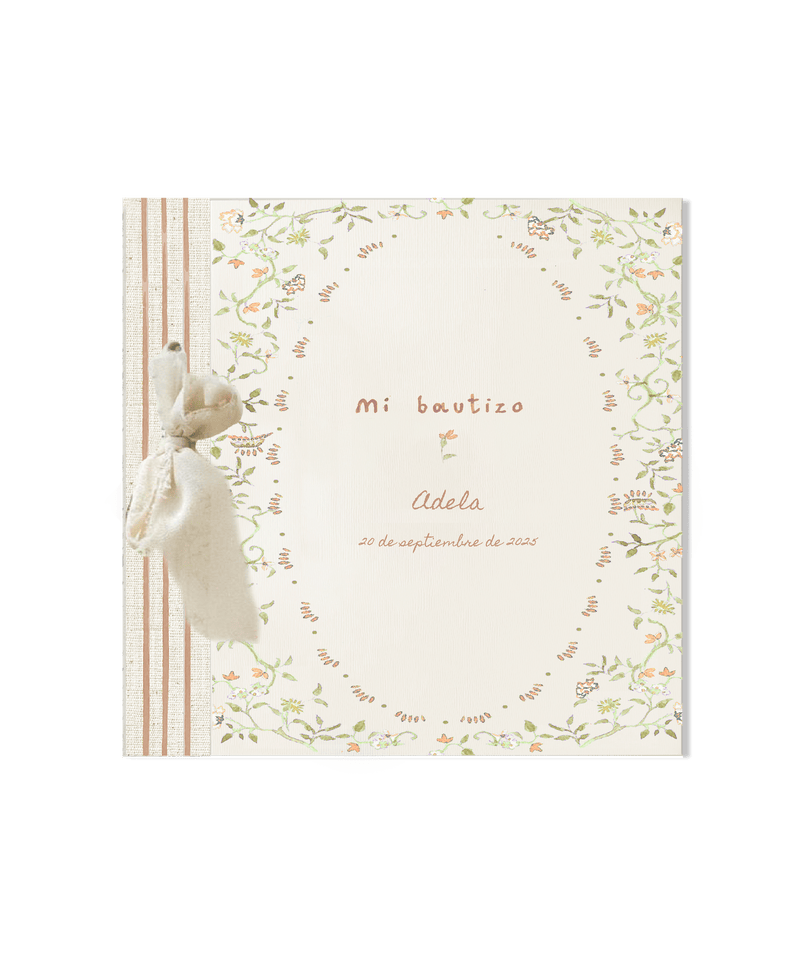 - Portada con estampado de flores en acuarela y personalizada con nombre y fecha
